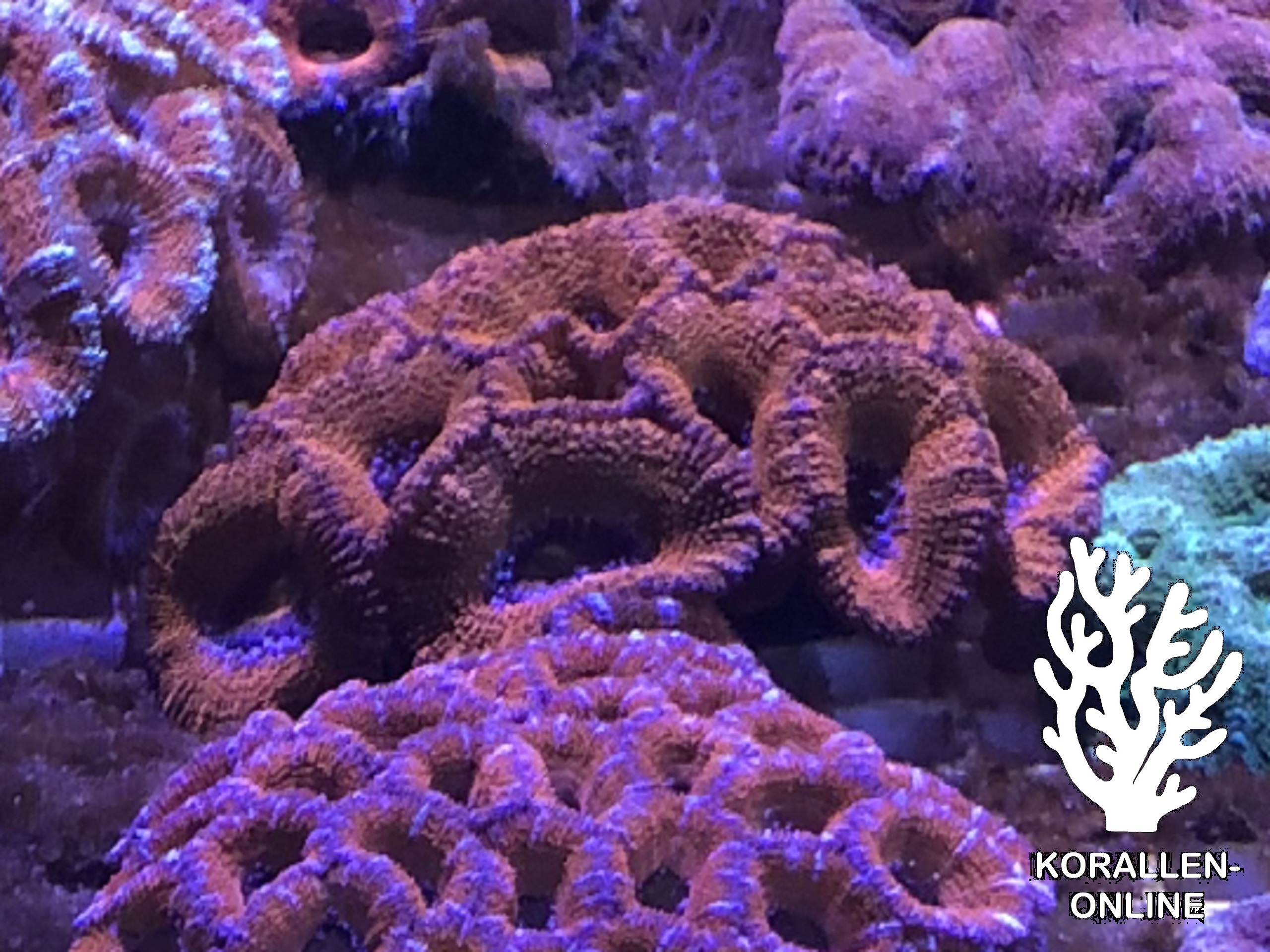 Acanthastrea lordhowensis rot leben in zum Teil großen Kolonien, wobei die einzelnen Koralliten durch Kalkwände von den benachbarten Korallenkelchen getrennt sind. Grundsätzlich leicht in der Haltung, wie fast alle LPS-Korallen, wobei natürlich die Grundwerte im Bezug auf die Wasserparameter immer eingehalten werden sollen. Einzig die Empfindlichkeit auf Faden- oder Bohralgen ist bekannt, das betrifft aber viele LPS-Korallen gleichermaßen. Strömung mittel, Licht ebenfalls eher weniger, also am besten Mittellichtzone bis Bodennähe, sogar Schattenbereich ist machbar. Direktes starkes Licht sollte es nicht sein. Das ursprüngliche Tier dieser Acanthastrea lordhowensis rot stammt aus Australien und wurde vom CoralsDownUnder importiert. Beachte bei der Bestellung unsere AGBs bezüglich Lieferung & Zustellung, damit dein Tier auch sicher ankommt.